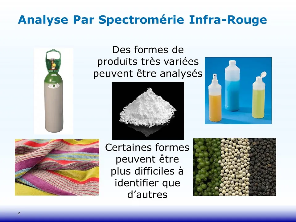 La spectrométrie infrarouge est une technique non destructive permettant d'analyser de nombreux types de matériaux sous toutes leurs formes: